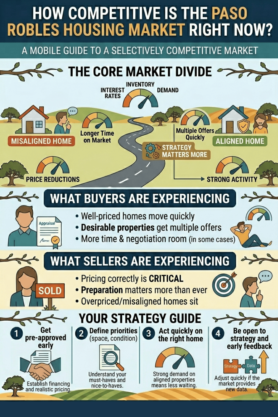 As a real estate agent in Paso Robles, CA helping buyers and sellers across San Luis Obispo County, what I’m seeing is a more balanced market where strategy matters more than speed.