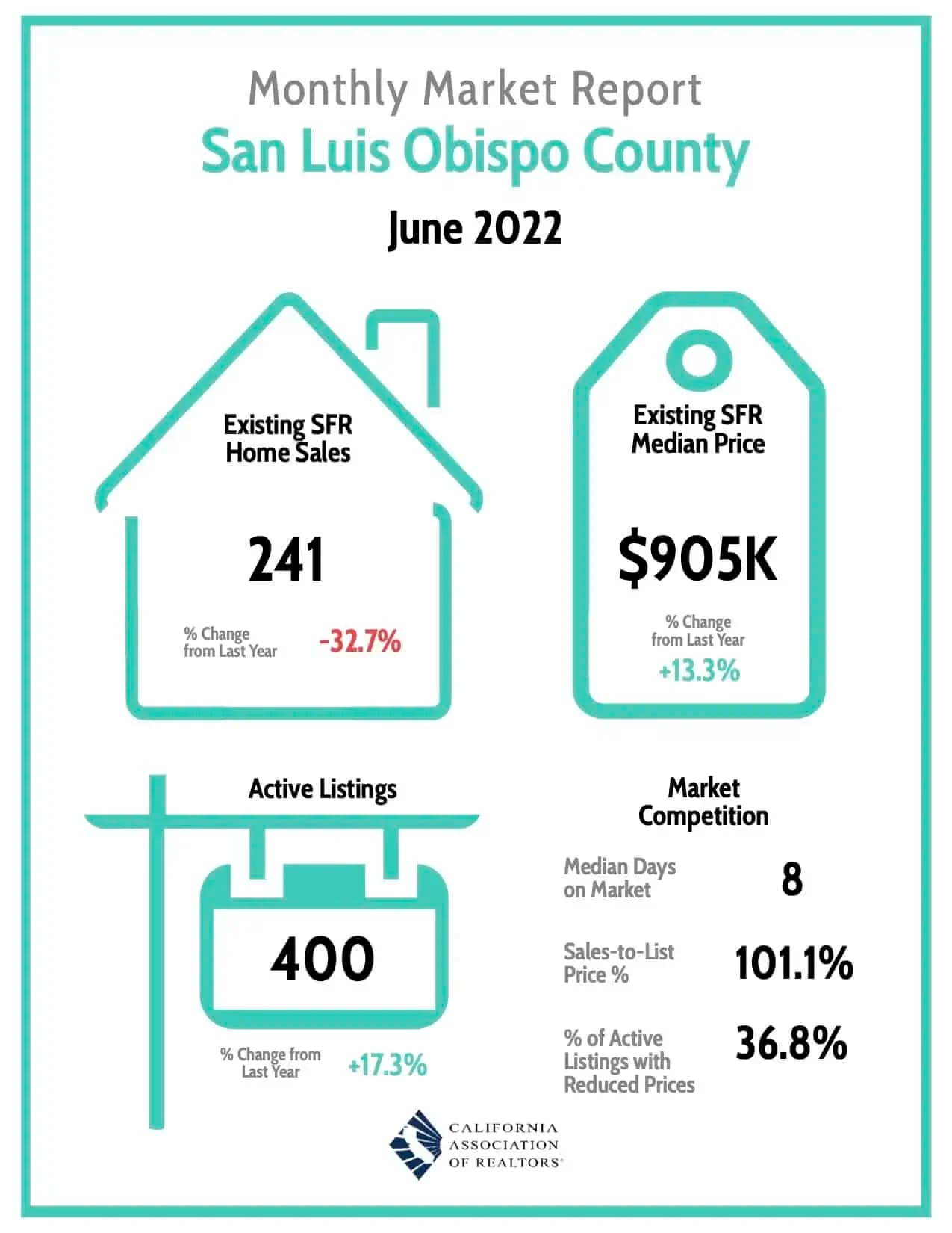 SLO County Stats indicate the market remaining strong as inventory continues to rise. Even with inventory increasing, there is still a strong demand for homes on the central coast, which will perpetuate strong seller’s market conditions for the time being- particularly for homes $650K and under, and even moreso if the home is turnkey. For Sellers, as mentioned in past, pricing your home correctly at market value out of the gate is key to avoid price reductions, longer days on market and ultimately negatively impacting your bottom line. Interested in data for a specific city or area? Reach out and I will provide you with market information in your area of interest.