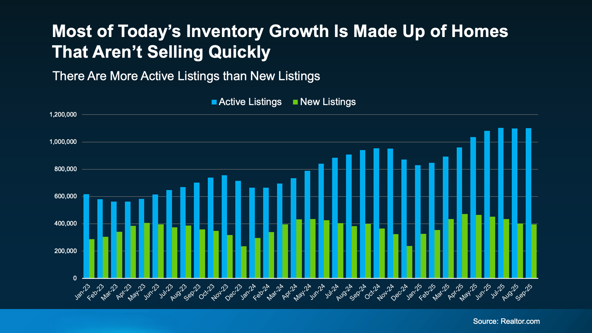 According to Realtor.com, most of the recent growth in inventory isn’t from new listings — it’s from homes that are lingering on the market longer (see graph below).