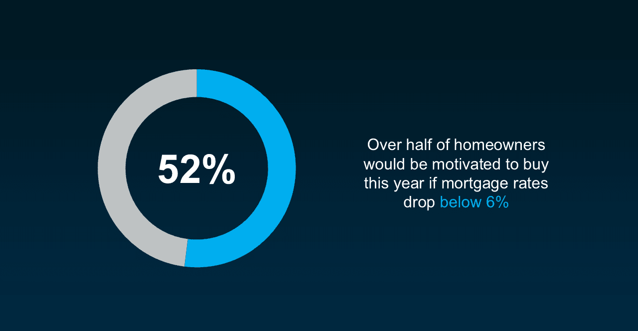 The truth is, if mortgage rates continue to ease, as experts project, more buyers will jump back into the market. A survey from Bankrate shows over half of homeowners would be motivated to buy this year if rates drop below 6% (see graph below):