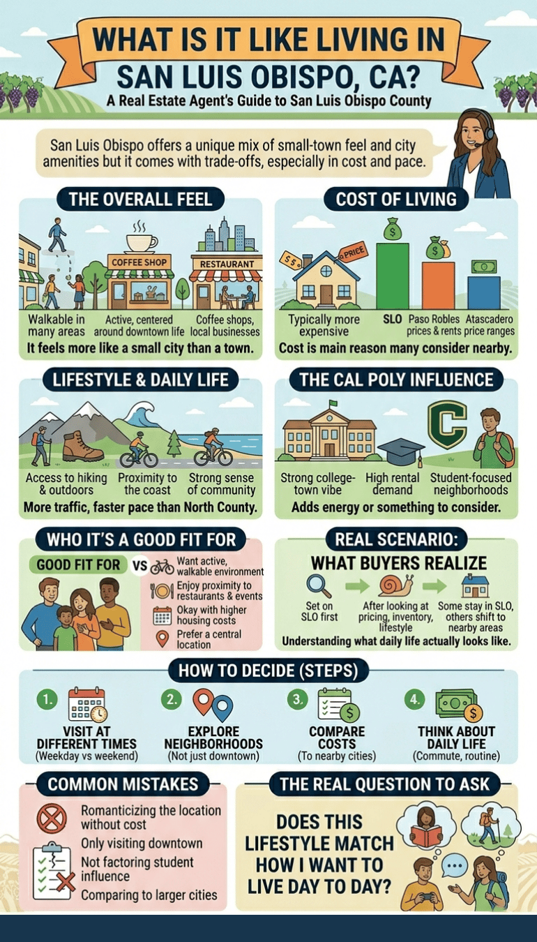 As a real estate agent in Paso Robles, CA helping buyers and sellers across San Luis Obispo County, I work with a lot of people who are drawn to San Luis Obispo for its lifestyle but end up weighing whether it truly fits their needs long term.