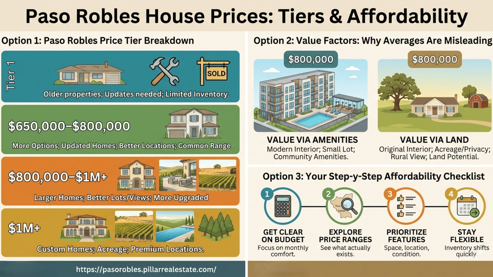 As a real estate agent in Paso Robles, CA helping buyers and sellers across San Luis Obispo County, I can tell you that “average price” is one of the most misunderstood numbers in real estate. What matters more is what you actually get at different price points.